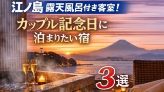関東 江ノ島 露天風呂付き客室!カップルの記念日に泊まりたい宿3選 江ノ島で露天風呂付き客室を探しているカップル必見。記念日・誕生日に人気の宿を楽天トラベルから厳選紹介。二人だけで過ごせる特別な宿泊先が見つかります。 2025.12.16 関東露天風呂付き客室
